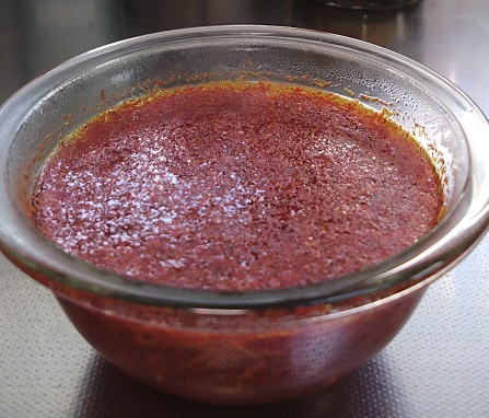 紅花は熱湯をかけて1分くらいおき、絞っておきます。