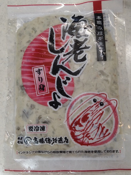 今回は、私のお気に入りで、冷凍庫に常備してある海老しんじょを使います。