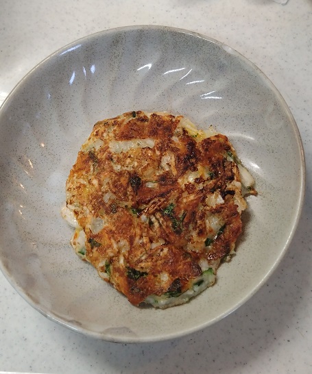 ①長芋は細切り、青じそは千切りにし、白エビとチーズを加え、軽く塩・胡椒し混ぜ合わせる。